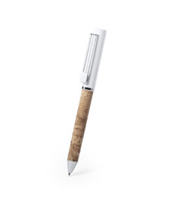 Nature Line Kugelschreiber in einer Kombination aus Naturkork und Metall. Mit Original-Metallclip in verchromter Ausführung, passender Spitze und Ring. Oberteil in weiß, mit Drehmechanismus und blauer Tinte. Präsentiert in individueller Ökodesign-Box.