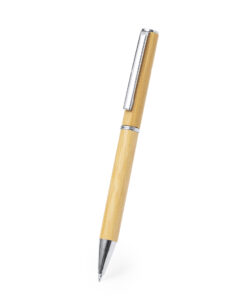 Kugelschreiber mit Bambusschaft, Metallclip und verchromten Beschlägen. Mit Drehmechanismus und in blauer Tinte.