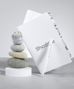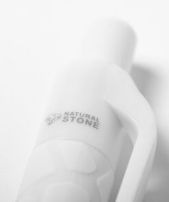 Nature Line-Kugelschreiber mit Druckknopfmechanismus. Gestanzter Lauf aus Natursteinextrakten, der dazu beiträgt, den Einsatz von Kunststoffen zu reduzieren, und der eine glatte, strapazierfähige Oberfläche bietet. In Weiß mit einem Naturstein-Logo auf der Oberseite, Jumbo-Patrone und blauer Tinte.