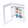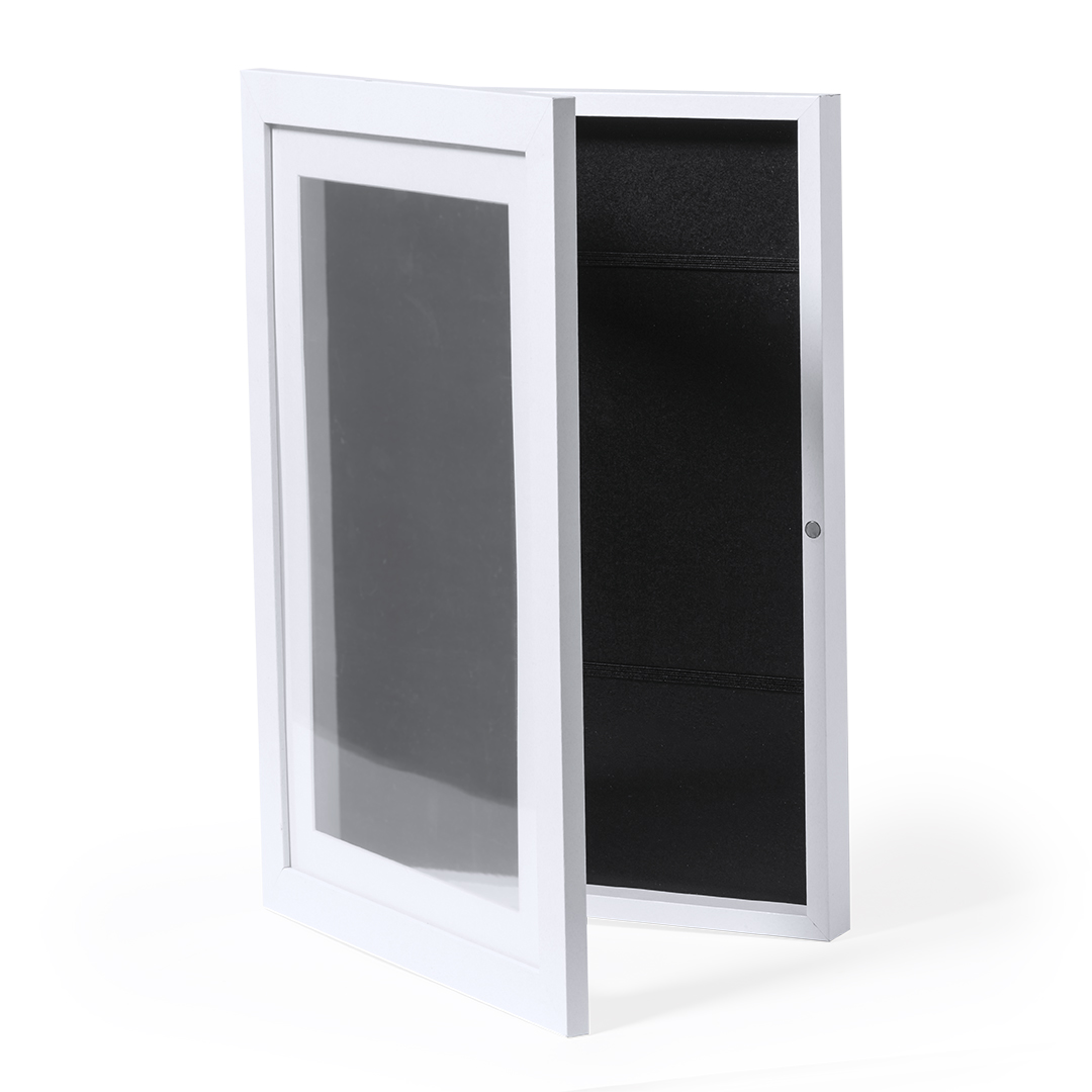 Eleganter Kunstrahmen, der Funktionalität und Stil vereint. Mit einem Fach zur Aufbewahrung von A4-Designs, die durch elastische Bänder an Ort und Stelle gehalten werden, während der Deckel über einen Rahmen zur Präsentation des ausgewählten Kunstwerks verfügt. Mit Klappöffnung und Magnetverschluss für eine praktische und sichere Bedienung. Einzeln präsentiert in einer Kraft-Designbox.