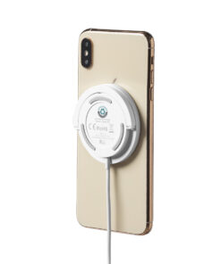 10W magnetisches kabelloses Ladegerät mit integriertem Ständer. Gehäuse aus recyceltem ABS (RABS) und mit RCS-Zertifizierung, die seine recycelte Herkunft garantiert. Mit 1m USB-Kabel. Inklusive Metallzubehör mit 3M-Kleber, extra starke Fixierung und rückstandsfrei beim Ablösen vom Gerät, so dass die magnetische Funktion des Ladegeräts an jedem mobilen Gerät genutzt werden kann. Kompatibel mit Terminals, die mit kabelloser Ladetechnologie ausgestattet sind. Große Beschriftungsfläche und präsentiert in einer attraktiven Öko-Designbox. Bedienungsanleitung in Spanisch und Englisch verfügbar.