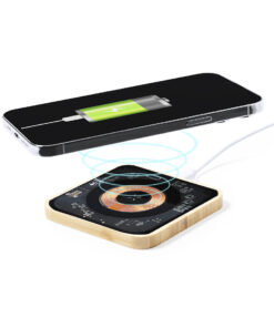 Kabelloses 15W-Ladegerät mit originellem Design und transparenter Oberfläche, um die internen Komponenten des Geräts anzuzeigen. Mit quadratischer Bambusbasis und kompatibel mit Geräten mit Qi-Technologie. Typ-C-Anschluss, mit spanischer und englischer Bedienungsanleitung. Präsentiert in einer individuellen Kraftbox.Materialien wie Bambus fördern die Verwendung natürlicher Rohstoffe und reduzieren die Schadstoffemissionen. Es stammt aus einer Pflanze von großer Festigkeit und Vielseitigkeit, mit schnellem Wachstum und Regeneration, eine ausgezeichnete Alternative zur Verwendung von traditionellem Holz.Hergestellt nach RoHS-Standards und unter Einhaltung der folgenden Sicherheitsanforderungen:Überhitzungsschutzsystem.Überladungsschutzsystem.Blockiersystem zur Vermeidung von Kurzschlüssen.