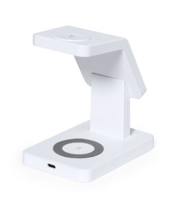 Vollständiges kabelloses 15-W-Ladegerät mit Gerätehalterung. Für das gleichzeitige Aufladen von Smartphone, Kopfhörer und Smartwatch: eine All-in-One-Ladestation. Präsentiert in einer Box im Kraftdesign. Gebrauchsanweisung in Englisch und Spanisch erhältlich.