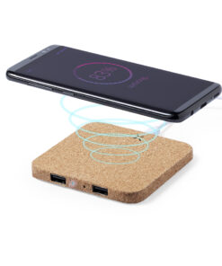 Drahtloses Ladegerät 10W aus Nature Line. Gehäuse aus Naturkork, mit Ladestatusanzeige und doppelter USB-Ausgangskapazität von 2.100 mA zum gleichzeitigen Laden von bis zu 3 Geräten (1 kabelloses und 2 kabelgebundene). Inklusive 1 Meter langem Micro-USB-Kabel, mit rutschfestem Samtfuß und kompatibel mit Geräten, die mit kabelloser Ladetechnik ausgestattet sind. Präsentiert in einer attraktiven Box im Öko-Design.