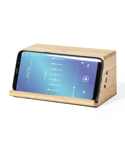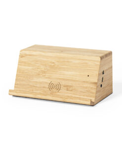 Kabelloser Induktionsladelautsprecher der Liene „Natur“ mit 10 W Ladung. Mit integrierter Smartphone-Halterung und 2 Lautsprechern mit je 3W. Aus Bambus aus natürlichen Zuschnitten, mit rutschfestem Boden. Kompatibel mit Geräten mit kabelloser Ladetechnologie und aufladbar über USB-Kabel -im Lieferumfang enthalten-. Große Beschriftungsfläche und präsentiert in einer attraktiven Öko-Designbox.