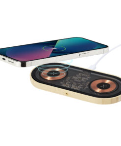 Dual-15W-Wireless-Ladegerät in einem originellen Design mit einer transparenten Oberfläche, die die internen Komponenten des Geräts zeigt. Mit Bambusbasis, kompatibel mit Geräten mit Qi-Technologie und ermöglicht es auch, zwei Geräte gleichzeitig aufzuladen. Typ C Verbindung, mit Anleitung in Englisch und Spanisch. Präsentiert in einer individuellen Kraft Design-Box.Materialien wie Bambus fördern die Verwendung natürlicher Rohstoffe und reduzieren die Schadstoffemissionen. Es stammt von einer sehr widerstandsfähigen und vielseitigen Pflanze mit schnellem Wachstum und Regeneration, was es zu einer ausgezeichneten Alternative zu traditionellem Holz macht.Hergestellt nach RoHS-Standards und in Übereinstimmung mit den folgenden Sicherheitsanforderungen:Überhitzungsschutzsystem.Überladungsschutzsystem.Blockiersystem zur Vermeidung von Kurzschlüssen.