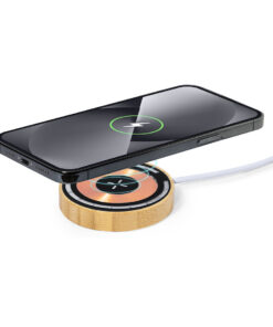 Drahtloses Ladegerät 15W, mit einer originellen transparenten Basis, um die internen Komponenten des Geräts zu sehen. Mit Bambusbasis und Magsafe-Magnetbefestigung, kompatibel mit Geräten mit Qi-Wireless-Ladetechnologie. Typ C Verbindung, mit Bedienungsanleitung in Englisch und Spanisch. Präsentiert in einer individuellen Kraft Design-Box.Materialien wie Bambus fördern die Verwendung natürlicher Rohstoffe und reduzieren die Schadstoffemissionen. Es stammt von einer sehr widerstandsfähigen und vielseitigen Pflanze mit schnellem Wachstum und Regeneration, was es zu einer ausgezeichneten Alternative zu traditionellem Holz macht.Hergestellt nach RoHS-Standards und in Übereinstimmung mit den folgenden Sicherheitsanforderungen:Überhitzungsschutzsystem.Überladungsschutzsystem.Blockiersystem zur Vermeidung von Kurzschlüssen.