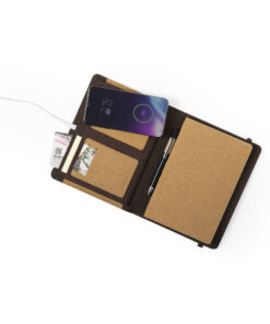 Naturlinie, Notizblock mit integriertem kabellosen Ladegerät. Umschläge aus Naturkork, in schlichtem Design, mit der Ladestation auf der Rückseite des Umschlags. 64-Blatt-Notizblock mit gestreiftem Layout. Kompatibel mit Geräten, die mit kabelloser Ladetechnik ausgestattet sind. Inklusive Mikro-USB-Ladekabel und erhältlich in einer attraktiven, umweltfreundlichen Design-Box.