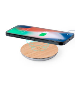 Kabelloses Ladegerät 15W mit kreisförmigem Design, Gehäuse aus recyceltem Aluminium und Ladestation aus Bambus. Kompatibel mit Geräten mit kabelloser Qi-Ladetechnologie, Typ-C-Ladekabel und LED-Ladestatusanzeige. Rutschfeste Basis und in einer individuellen Kraft-Design-Box präsentiert, mit Bedienungsanleitung in Englisch und Spanisch.Materialien wie Bambus fördern die Verwendung natürlicher Rohstoffe und reduzieren die Schadstoffemissionen. Es stammt von einer sehr widerstandsfähigen und vielseitigen Pflanze mit schnellem Wachstum und Regeneration, was es zu einer ausgezeichneten Alternative zu traditionellem Holz macht.Recyceltes Aluminium ist ein Material mit nahezu unbegrenzten Recyclingmöglichkeiten, das seine ursprünglichen Eigenschaften behält und bei diesem Prozess weniger Energie verbraucht.GRS-Zertifizierung (Global Recycled Standard), die den recycelten Ursprung des zur Herstellung des Produkts verwendeten Materials garantiert.Hergestellt nach RoHS-Standards und in Übereinstimmung mit den folgenden Sicherheitsanforderungen:Überhitzungsschutzsystem.Überladungsschutzsystem.Blockiersystem zur Vermeidung von Kurzschlüssen.