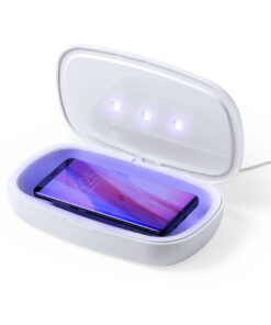 Ultraviolettlicht-Sterilisator-Box Typ C, mit im Deckel integriertem Ladegerät für drahtlose Smartphones. Speziell entwickelt, um Mikroorganismen und Bakterien in alltäglichen Gegenständen wie Smartphones, Schlüsseln, Brillen, Masken, Kopfhörern, Smartwatch… zu beseitigen. Hergestellt aus widerstandsfähigem ABS-Material mit matter Oberfläche und präsentiert in einer attraktiven individuellen Design-Box.Einfach zu verwenden, einfach den Gegenstand in die Schachtel stecken. Lampenleistung 1W Wellenlänge 270-280 nm, mit Stromversorgung durch 1m langes USB-Kabel Typ C in passender Farbe. 5 und 10 Minuten Sterilisationszeit mit Auto-Off-Funktion.Benutzerhandbuch in Spanisch und Englisch erhältlich.CE-, RoHS- und keimtötende Wirksamkeitszertifizierung verfügbar.Für die ordnungsgemäße Verwendung des Produkts den Kontakt mit Haut und Augen vermeiden.