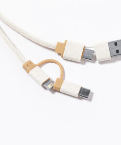 Ladekabel mit Karabinerhaken. Hergestellt aus natürlichen und umweltfreundlichen Materialien:Mittelstück aus natürlichem Bambus.Baumwollbeschichtete Kabel, einschließlich Typ-C- und USB-Eingangsanschlüsse, Lightning-, Micro-USB- und Typ-C-Ausgänge. 5V DC 2,4A.Präsentiert in individueller Kraft-Design-Tasche. Aufhänger mit unverwechselbarem Bambus- und Baumwoll-Kraftanhänger.Hergestellt mit pflanzlichen Elementen, um die Verwendung von natürlichen Rohstoffen zu fördern und Schadstoffemissionen zu reduzieren.