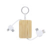Schlüsselanhänger-Ladegerät der Nature Line und kompaktem Design. Hergestellt aus Bambus aus natürlichen Ablegern. Typ C (Eingang und Ausgang) und zwei Micro-USB-Lightning-Anschlüsse, mit reversiblem USB-System für den einfachen Anschluss an das Netzteil. Große Markierungsfläche. Präsentiert in einem individuellen, umweltfreundlichen, selbstverschließenden Beutel.