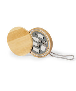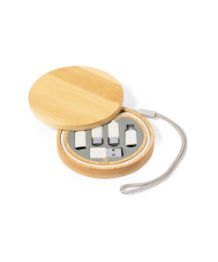 Komplettes Ladekabelset aus Weizenfaser, mit poliertem Bambusgehäuse und Tragegriff. Enthält ein Kabel mit Datenübertragungsfunktion und mehreren Anschlüssen, mit Micro-USB-, Typ-C- und Lightning-Steckern. 5V DC 3A. Präsentiert in einer Kraft-Design-Box.Hergestellt aus pflanzlichen Elementen, um die Verwendung natürlicher Rohstoffe zu fördern und Schadstoffemissionen zu reduzieren.