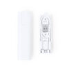 Kompletter Satz Ladekabel. Verpackt in einem kompakten Gehäuse aus widerstandsfähigem weißem ABS mit integrierter Smartphone-Halterung. Inklusive Ladegerät und Sync-Kabel, geeignet für die Datenübertragung und mehrere Verbindungen: Micro USB, Typ C und Lightning; SIM-Auswerfer enthalten. 5V DC 3A. Präsentiert in einer Kraft-Design-Box.