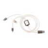 Ladekabel aus Kaffeefasern, mit Kabeln aus recycelter Baumwolle. Typ-C- und USB-Eingangsanschlüsse, mit Typ-C-, Lightning- und Micro-USB-Ausgängen. 5V DC 2,4A. Mit Aufklebern aus Kaffeefasern und recycelter Baumwolle. Präsentiert in einer individuellen, selbstverschließenden Kraft-Design-Tasche.Kaffeefasern sind eine kreislauffähige Lösung, die aus der Verwendung der bei der Kaffeeproduktion anfallenden Abfälle gewonnen wird. Eine nachhaltige Alternative, die den Einsatz von Kunststoffen reduziert, Energie im Herstellungsprozess spart und zum Umweltschutz beiträgt. Es gibt eine GRS-Zertifizierung (Global Recycled Standard), die die recycelte Herkunft des für die Herstellung des Produkts verwendeten Materials garantiert.
