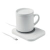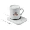 2 in 1 kabellose Ladestation 15W und Tassenwärmer aus ABS. Mit Becher und Deckel aus Keramik. Füllmenge: 250 ml. Hält Getränke bis max. 50 °C warm. Touchscreen mit 3 Temperatureinstellungen. USB-Kabel. Ausgang: DC 9 V/1,67 A (15 W).