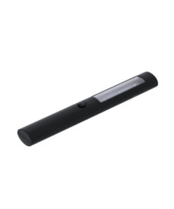 Taschenlampe mit 3 LEDs, robustem ABS-Körper, mit Druckknopf an der Front und praktischen Magneten auf der Rückseite. Betrieb mit inkludierten Knopfzellen.