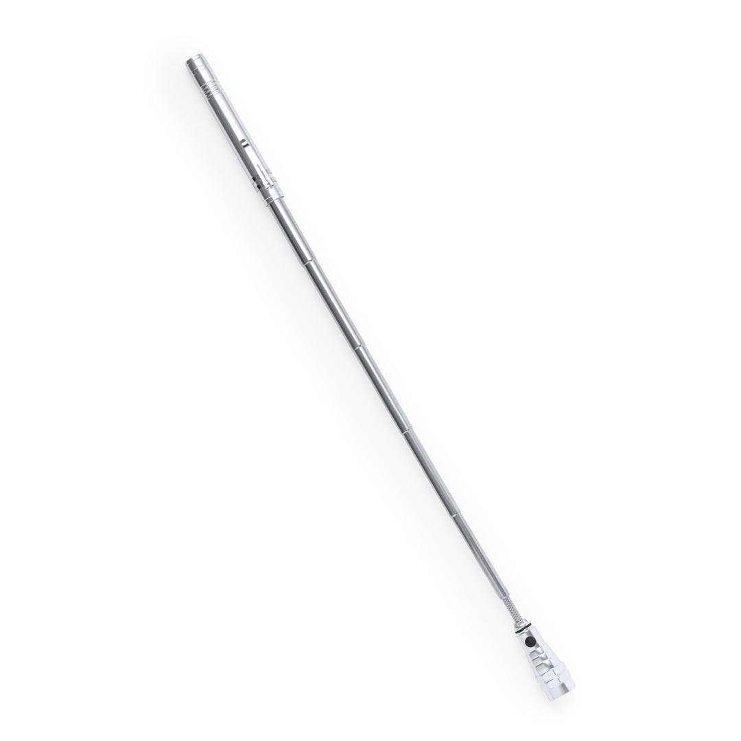 Praktische und vielseitige Taschenlampe aus Aluminium, mit ausziehbarem Kopf (verdreifachte Länge) und flexibel, um überall hin zu gelangen. Es ist mit Magneten ausgestattet, um sich an unterschiedliche Bedürfnisse anzupassen, und verfügt über 3 leistungsstarke LEDs für eine effiziente Beleuchtung. Betrieb mit Knopfbatterien (im Lieferumfang enthalten) und Metallclip. Einzeln verpackt in einer Kraft-Design-Box.