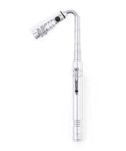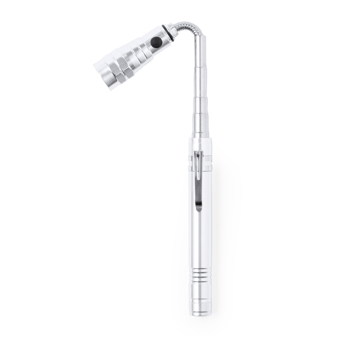 Praktische und vielseitige Taschenlampe aus Aluminium, mit ausziehbarem Kopf (verdreifachte Länge) und flexibel, um überall hin zu gelangen. Es ist mit Magneten ausgestattet, um sich an unterschiedliche Bedürfnisse anzupassen, und verfügt über 3 leistungsstarke LEDs für eine effiziente Beleuchtung. Betrieb mit Knopfbatterien (im Lieferumfang enthalten) und Metallclip. Einzeln verpackt in einer Kraft-Design-Box.