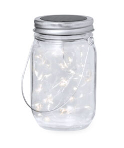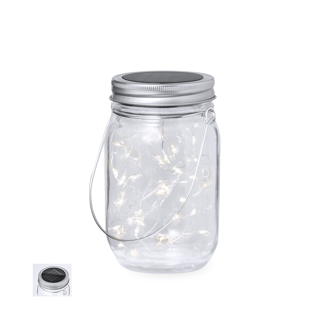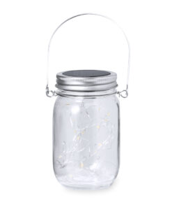 Cooles, solarbetriebenes Gefäß und Lampe aus widerstandsfähigem Glasmaterial mit einem dekorativen Innenstreifen aus 20 LEDs. Inklusive Schraubdeckel aus Metall, mit integriertem Mini-Akku-Solarpanel und 300-mAh-Akku. Mit praktischem Griff zum Tragen oder Aufhängen und präsentiert in einer individuellen Box im Kraft-Design.