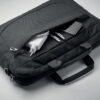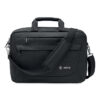 15“ Laptop-Tasche aus 600D RPET Polyester. 2 Hauptfächer für Laptop und Tablet sowie große Frontreißverschlusstasche. Kleine Tasche mit Reißverschluss. Abnehmbare und verstellbare Schultergurte. Trolley- Halterung.