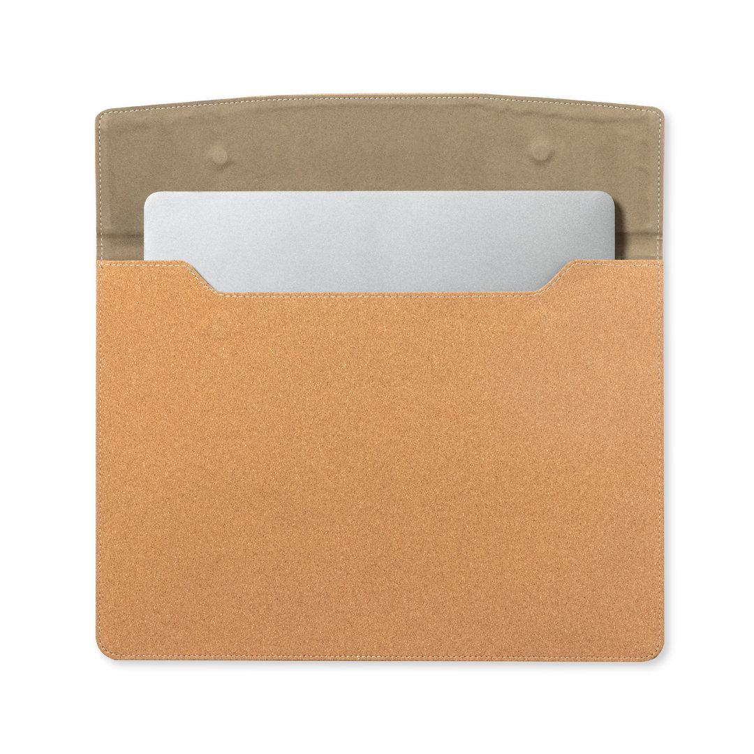 Langlebige, hochwertige Laptoptasche aus Kork, die auf die Verwendung natürlicher Materialien setzt. Hauptfach mit magnetischem Klappenverschluss und gepolstertem Innenraum. Geeignet für Laptops oder Tablets bis zu 14″.