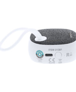 Solarlautsprecher aus einer Kombination recycelter Materialien (Recyceltes ABS und RPET). 3W Leistung und Bluetooth® 5.3 Verbindung. Enthält eine Lithiumbatterie, die über das Solarpanel oder über die USB-Typ-C-Verbindung aufgeladen werden kann – Kabel inklusive. Wird mit einem praktischen Tragegriff und dem RCS-Logo geliefert.RABS ist ein hochrecycelbarer und hochbeständiger Kunststoff mit einer Vielzahl von Anwendungen, die ihn zu einer umweltfreundlichen Lösung machen. Mit RCS-Zertifizierung, die seine recycelte Herkunft garantiert.