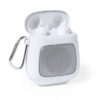 Einzigartiger Lautsprecher-Kopfhörer mit Bluetooth® 5.0-Verbindung, hergestellt aus widerstandsfähigem ABS in Weiß. Das Set enthält einen Bluetooth®-Lautsprecher mit 3 W Leistung, Freisprechfunktion und Karabiner. Ergänzt wird es durch ein Paar Ohrhörer mit integriertem Bedienknopf und je 30 mAh Akku. 600-mAh-Ladestation, mit LED-Ladestatusleuchte. Einzeln verpackt in einer Kraftbox, mit Bedienungsanleitung in Englisch und Spanisch.Hergestellt gemäß den RoHS-Normen und unter Einhaltung der folgenden Sicherheitsanforderungen:Überhitzungsschutzsystem.Überladungsschutzsystem.Blockiersystem zur Vermeidung von Kurzschlüssen.