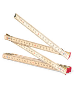 Klassisches Tischlerlineal aus Naturholz. Zusammenklappbar, mit 10 Segmenten und 2 m Länge.