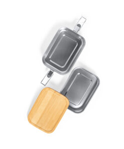 Lunchbox mit 940 ml Fassungsvermögen, aus recyceltem Edelstahl. Zwei Fächer von 340 ml und 600 ml, mit hermetischem Deckel aus Bambus und Sicherheitsverschlüssen mit Logo für recyceltem Edelstahl. Präsentiert in einer individuellen Designbox. Stahl ist einer der begehrtesten Werkstoffe und fast überall zu finden, von Alltagsprodukten bis hin zu großen Bauwerken. Es verfügt über unzählige Eigenschaften, darunter Langlebigkeit und ein hohes Maß an Wiederverwendbarkeit, was es zu einer hochgeschätzten Alternative für nachhaltige Lösungen macht. Richtig behandelt, lassen sich daraus neue Ressourcen von unendlichem Nutzen gewinnen.