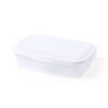 Brotdose mit einem Fassungsvermögen von 1 Liter, aus weißem PP. Hergestellt in Europa, mit Food Grade-Zertifizierung, die die Sicherheit garantiert, wenn Lebensmittel mit dem zur Herstellung des Produkts verwendeten Material in Kontakt kommen. Rechteckiges Format, mit Sicherheitsverschlüssen rundherum.