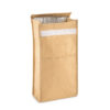Lunchbag aus recyceltem Kraftpapier mit Fronttasche. Füllmenge: 3l. Klettverschluss. Isoliermaterial: PE-Schaumstoffschicht.