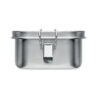 Lunchbox aus recyceltem Edelstahl (90 % recycelter Edelstahl und 10 % Edelstahl) mit starken Halteklammern. Füllmenge: 750 ml.