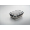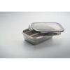 Lunchbox aus recyceltem Edelstahl mit Deckel aus PP und 4-seitigem Klickverschluss. Füllmenge: 850 ml.