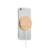 Induktives, magnetisches Ladegerät aus Bambus. Ausgang: DC 9V/1.1A (10W) für schnelles Aufladen. Inkl. magnetischem Metallring zur Unterstützung anderer nicht-magnetischer wireless aufladbarer Telefone. Bambus ist ein natürliches Produkt, es kann daher