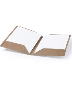 Mappe aus stabilem Recyclingkarton. Im Inneren mit zwei Klappentaschen.
