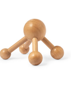 Massagegerät aus Naturholz. Entwickelt, um Linderung und Wohlbefinden zu bieten. Sein ergonomischer Griff sorgt für eine komfortable Handhabung, während seine vier Holzkugeln effizient sind und für eine revitalisierende Massage sorgen, die Muskelverspannungen löst. Präsentiert in einer individuellen Kraft-Designbox.