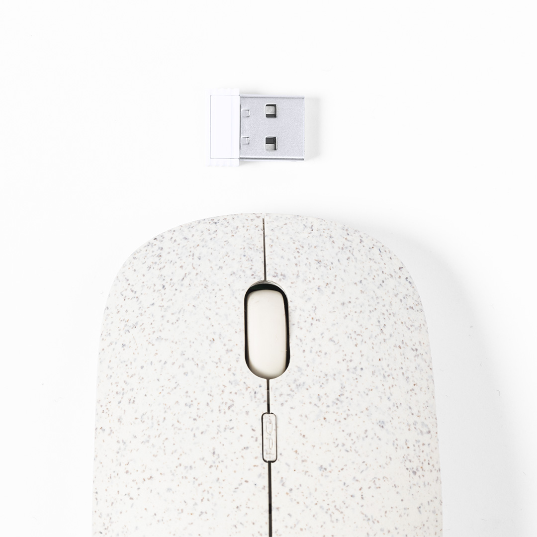 Linie „Natur“, kabellose optische Maus mit ergonomischem Design. Hergestellt aus Weizenstroh, um die Verwendung natürlicher Rohstoffe zu fördern und Schadstoffemissionen zu reduzieren. Inklusive DPI-Taste und batteriebetrieben (1xAA nicht enthalten). Präsentiert in einer attraktiven Ökodesign-Box.