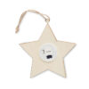 Weihnachtlich verzierter Stern aus MDF mit Licht und Aufhänger aus Kordel. Inkl. 3 LR44-Batterien.