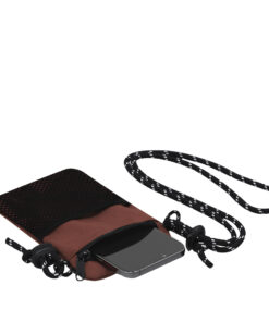 Stifthalter aus weichem 150D Polyester. Hauptfach mit unsichtbarem Reißverschluss in Schwarz und offener Netztasche auf der Vorderseite. Beinhaltet einen verstellbaren Schultergurt in Schnurform in Schwarz und Weiß.