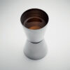 Doppelseitiger Messbecher aus Edelstahl. Füllmenge: 25 und 40 ml.