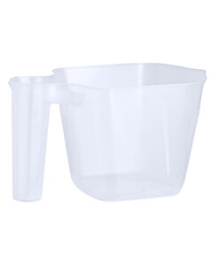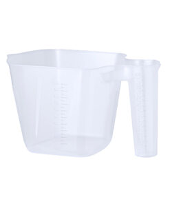 1L Messbecher aus widerstandsfähigem, transparentem PP, mit integriertem Messgriff. Hauptfach mit 1 Liter Fassungsvermögen, mit seitlicher Anzeige in 50-ml-Segmenten. Griff für eine genauere Probenahme, mit seitlicher Anzeige in 5-ml-Segmenten. Ausgießer, um ein Verschütten in beiden Behältern zu verhindern.