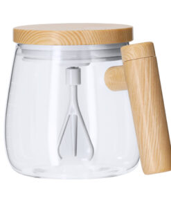 Mischbecher aus widerstandsfähigem Borosilikatglas mit 400 ml Fassungsvermögen. Inklusive Deckel mit elektrischem Rührer, der mit 2 AAA-Batterien betrieben wird (nicht im Lieferumfang enthalten) und einem Ein/Aus-Knopf oben. Mit einem speziellen Fach im Griff zur Aufbewahrung des Rührers, aus holzähnlichem ABS gefertigt. Mit einer Messskala auf dem weißen Körper bedruckt.Hergestellt aus Borosilikatglas, das eine außergewöhnliche Widerstandsfähigkeit und Haltbarkeit bietet, die Lebensdauer verlängert und viele Male wiederverwendet werden kann.