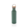 Eine Trinkflasche, die durch ihre Einfachheit schön ist. Diese moderne einwandige Edelstahlflasche mit Edelstahlgriff verfügt über einen Edelstahldeckel mit einer schönen Bambus Applikation. Kapazität 710ml. Nur Handwäsche. BPA frei.