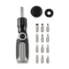 Biegsamer Schraubendrehersatz mit ABS-Griff. 12 Bit-Aufsätze aus Eisen, u.a. Phillips-, Flachkopf-, Sechskant- und Torx-Bits.