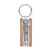 Multitool-Taschenmesser aus Edelstahl mit Griff aus Akazienholz. 7 Funktionen: Kapselheber, Messer, Dosenöffner, Feile, Schraubendreher, Schlüsselring und 1 LED-Licht. Inkl. 3 Knopfzellen.