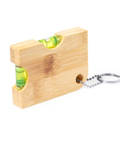 Praktischer Multifunktions-Schlüsselanhänger aus Bambus, mit integriertem Öffner und nützlichen Füllstandsanzeigen. Einzeln präsentiert in einer Kraft-Designbox.