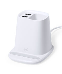 4 in 1 – Multifunktionsstift, aus strapazierfähigem ABS-Material in Weiß.Mit Stiftfunktionen, Smartphone-Halterung, kabellosem 5-W-Ladegerät und 2 USB-2.000-mA-Ausgängen. Unterer USB-Anschluss, geeignet für die Datenübertragung. Kompatibel mit Smartphones mit kabelloser Ladetechnik. Inklusive 1 Meter langem Typ-C-Kabel und in attraktiver Designerbox. Gebrauchsanweisung in Englisch und Spanisch verfügbar.