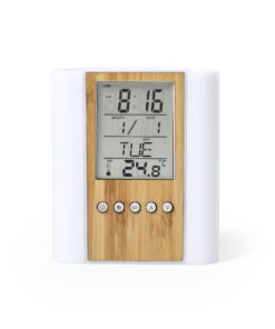 Nature Line Stift mit integrierter Multifunktionsuhr. Hergestellt aus einer Kombination von Bambus- und ABS-Materialien. Funktionen Thermometer, Kalender und Alarm, Timer und Geburtstagserinnerung. Batteriebetrieben (Knopfbatterien im Lieferumfang enthalten) und präsentiert in einer attraktiven Öko-Design-Box. Gebrauchsanweisung in Englisch und Spanisch verfügbar.