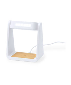 Multifunktionale Uhr mit beleuchtetem Display, Lampenfunktion und integriertem kabellosen 10W-Ladegerät. Hergestellt aus widerstandsfähigem ABS und Bambus, elegantes weißes Design, mit Zeit- (12/24h) und Alarmfunktionen (3). Dimmbares Display, kompatibel mit Geräten, die mit der kabellosen Ladetechnologie Qi ausgestattet sind und Lampe mit 6 LEDs. Präsentiert in einer individuellen Kraft-Design-Box mit Papierschutz, mit Bedienungsanleitung in Englisch und Spanisch.Hergestellt aus pflanzlichen Elementen, um die Verwendung natürlicher Rohstoffe zu fördern und Schadstoffemissionen zu reduzieren.
